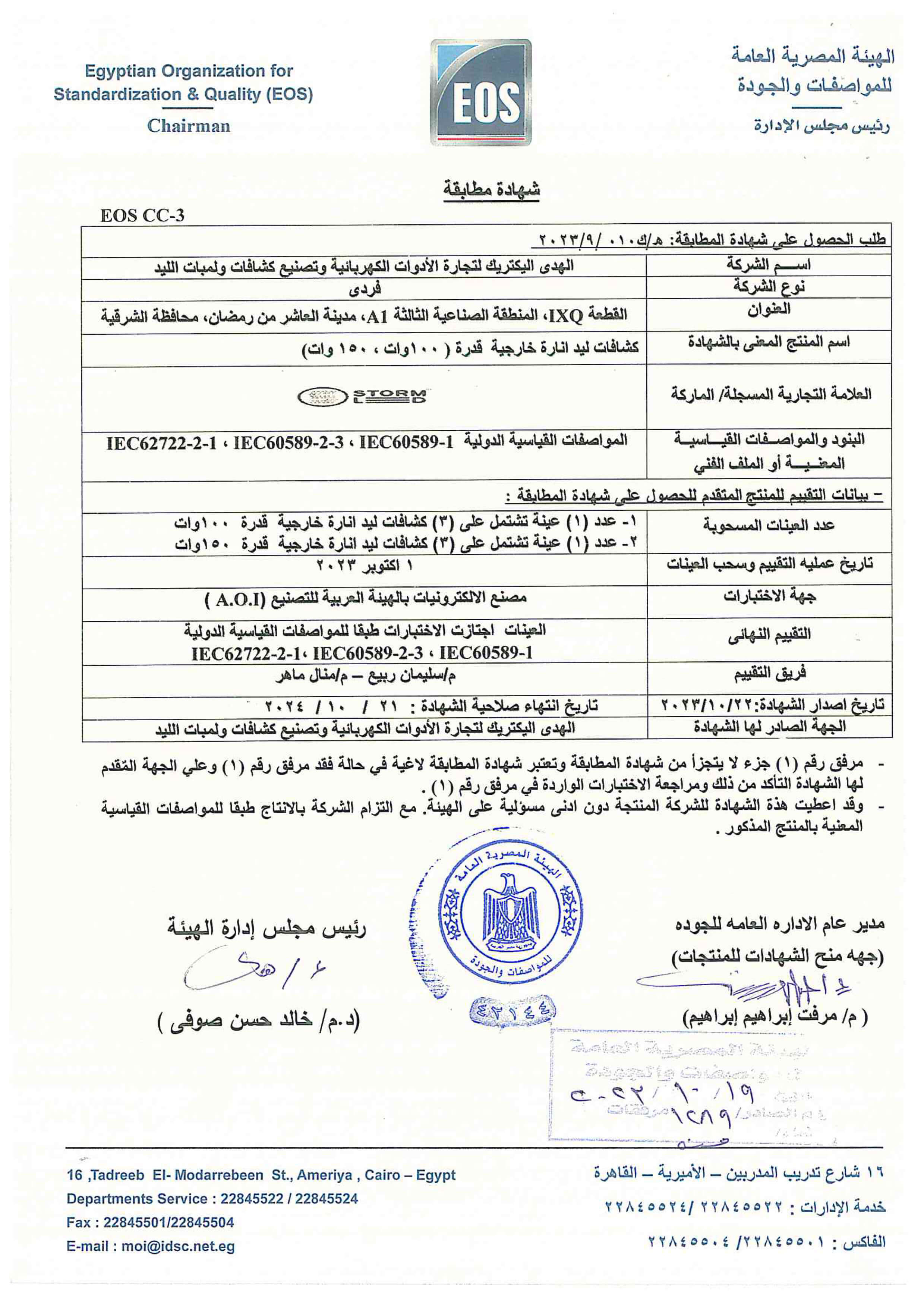 نحن نفتخر بتحقيق معايير عالية في صناعة الإضاءة. حازت ستورم ليد على مجموعة من الشهادات والاعتمادات العالمية التي تعكس التزامنا بأعلى معايير الجودة والأداء.